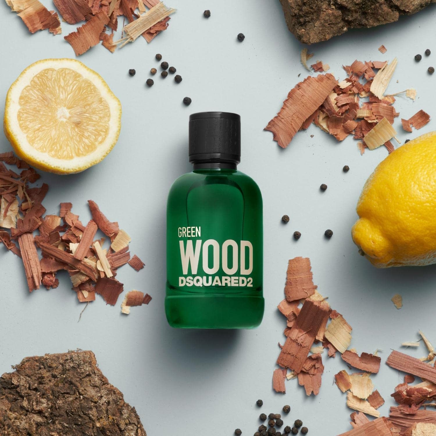 Dsquared2 Green Wood EDT smells like a fresh, woody-aromatic scent with invigorating citrus notes, embodying natural strength and sophistication.