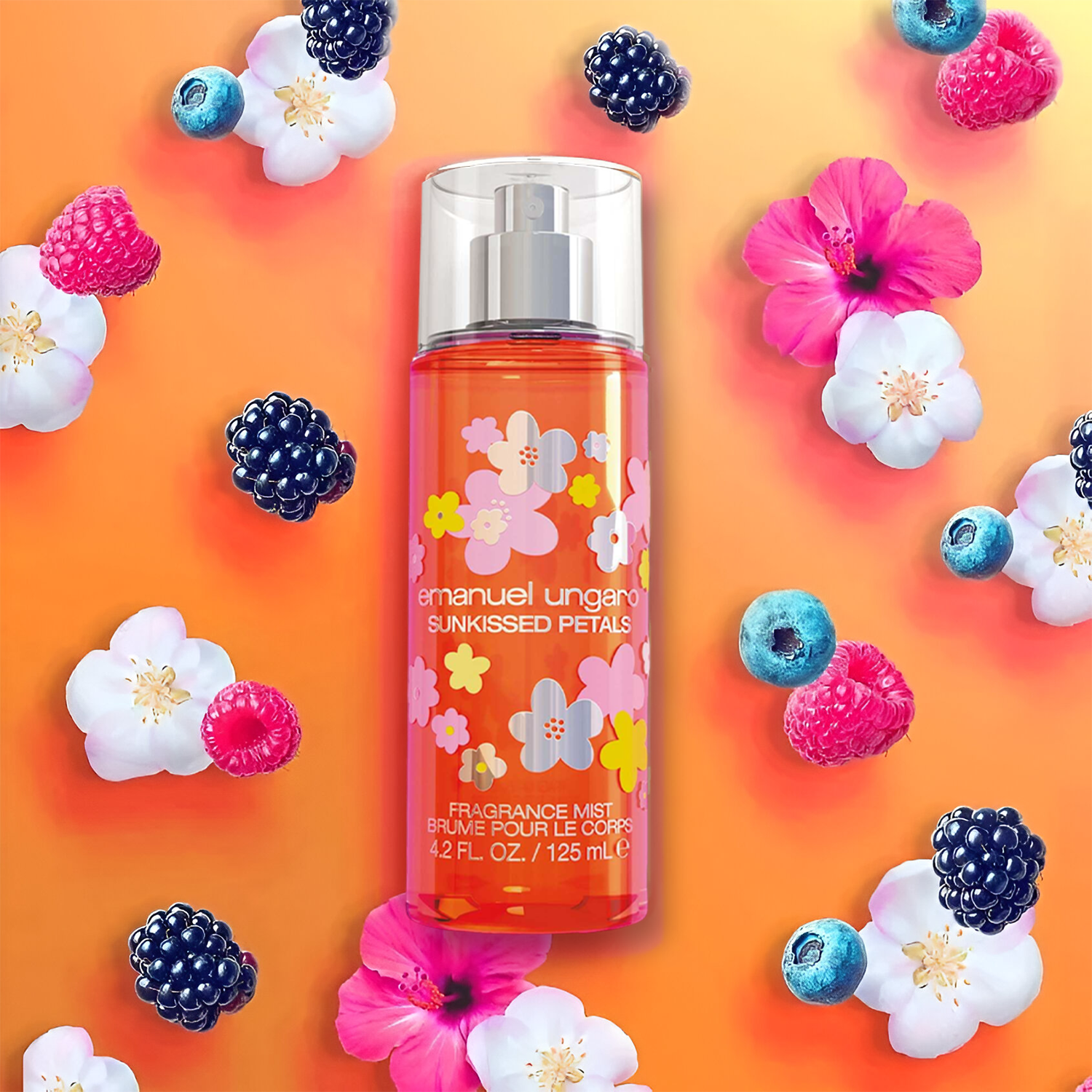 Immerse yourself in the essence of a radiant, sun-drenched garden with Emanuel Ungaro Sunkissed Petals Fragrance Mist.