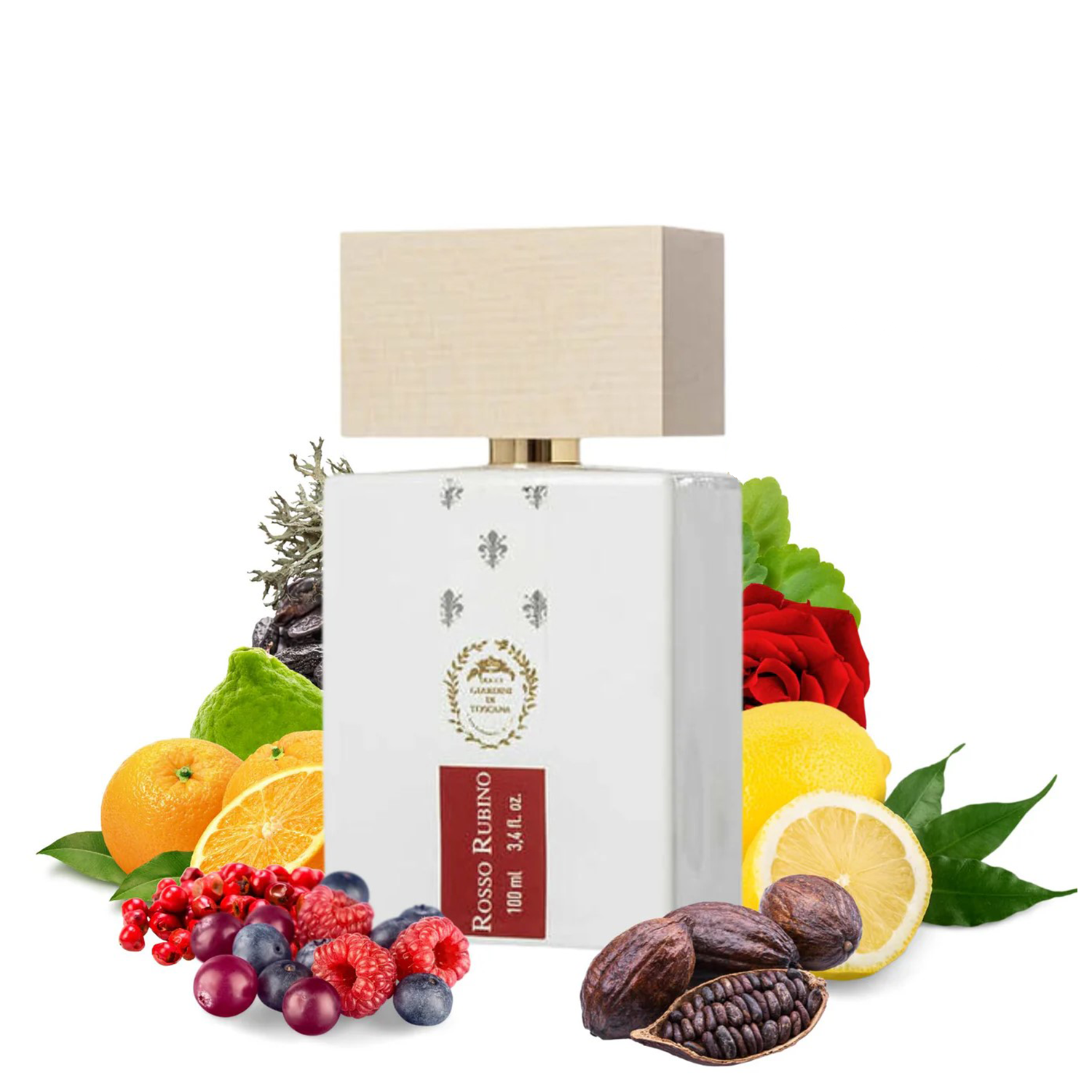 Giardini Di Toscana Rosso Rubino EDP smells like a beautiful blend of fresh citrus and soft rose, enriched with warm spices, capturing the enchanting essence of Tuscany's lush gardens.