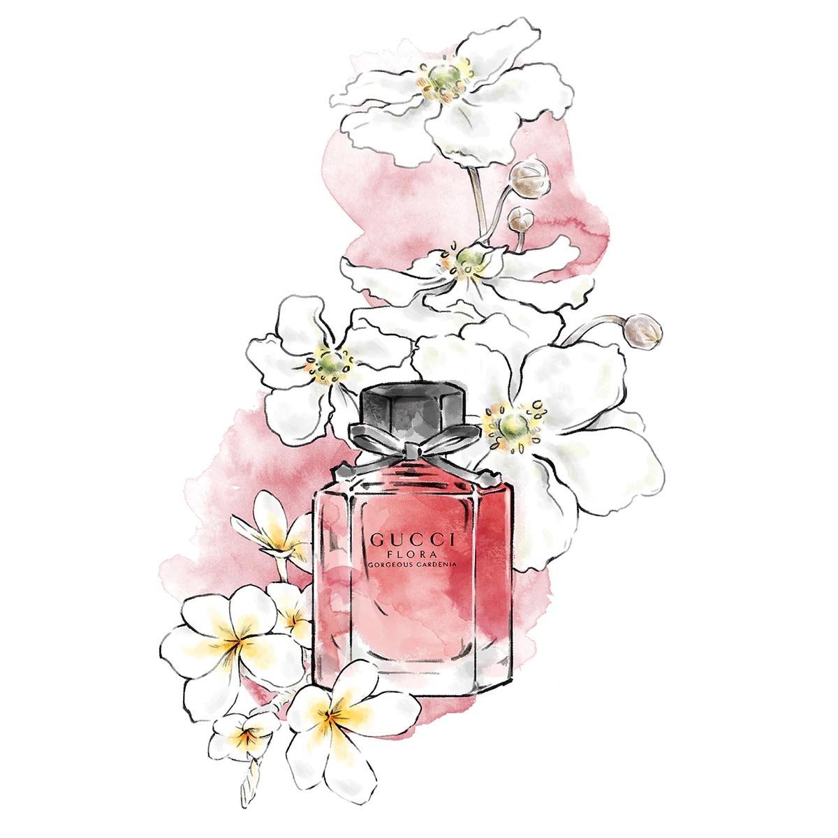 Gucci Flora Gorgeous Gardenia EDT smells like a blend of fresh pear, sweet red berries, rich gardenia, exotic frangipane, with hints of patchouli and brown sugar.