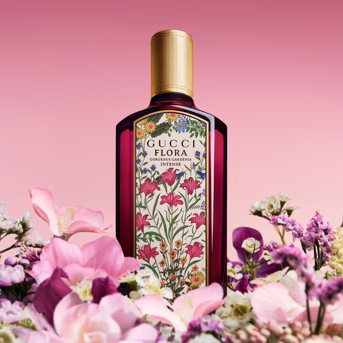 Gucci Flora Gorgeous Gardenia Intense smells like a bright burst of mandarin leading into a rich, creamy gardenia floral heart warmed by soft, sweet sandalwood for a modern, slightly gourmand finish.