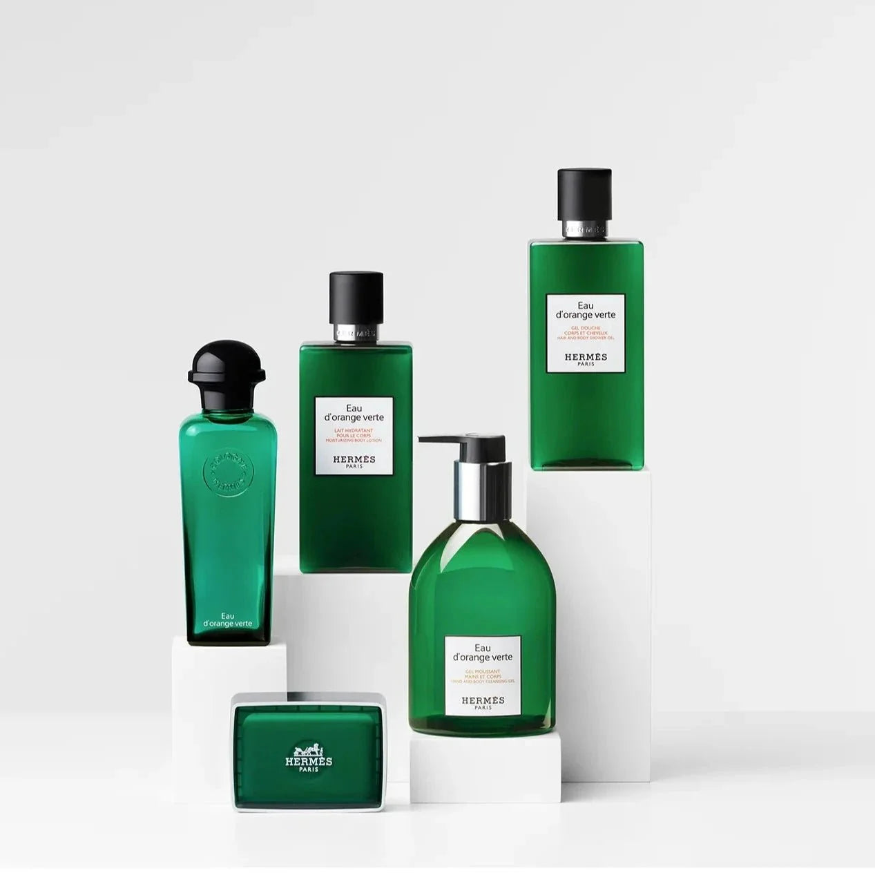 Hermès Eau D'Orange Verte Bath Foam smells like a fresh, elegant blend of morning dew, oak moss, and patchouli, evoking the essence of timeless sophistication.