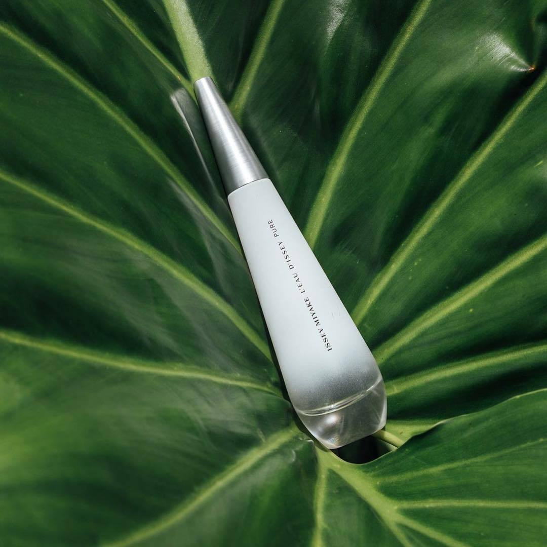 Issey Miyake L'Eau D'Issey Pure EDP smells like a fresh blend of marine notes, warm ambergris, and soft Lily of the Valley, with a woody cashmeran base.