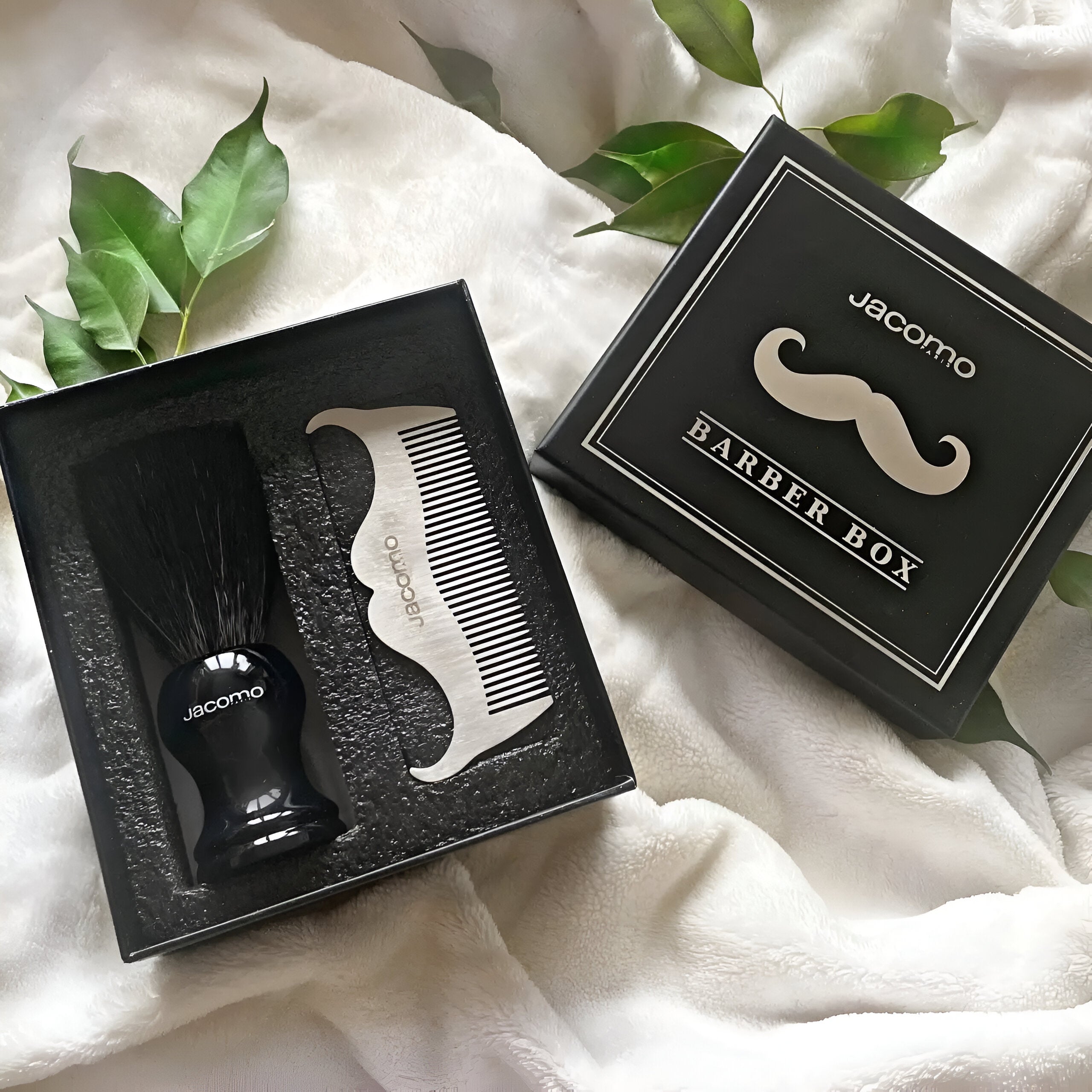 Jacomo Barber Box Shaving Kit delivers professional barber-quality tools for a classic wet shave. Trusted by Italy’s oldest shaving brush maker, it brings 115 years of grooming expertise to your bathroom.