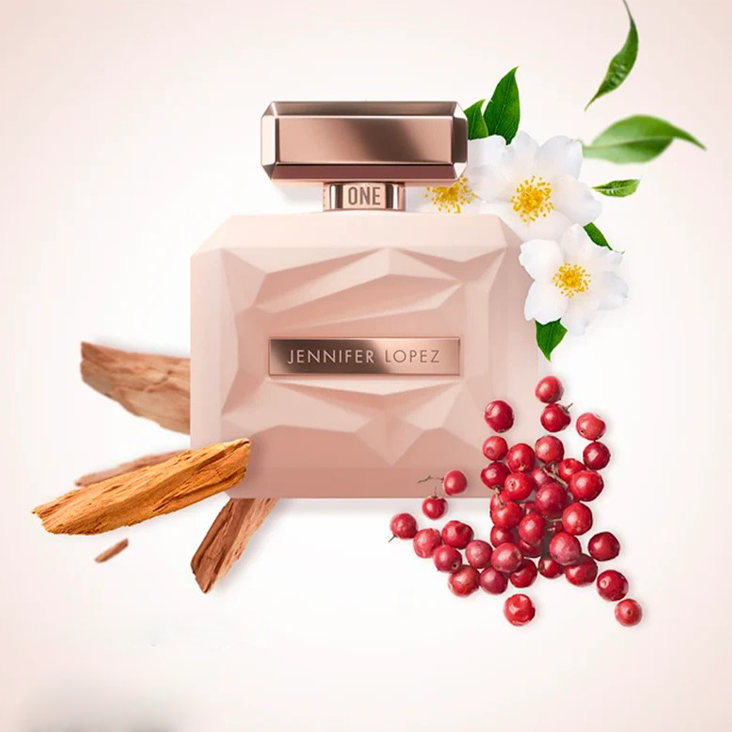 One by Jennifer Lopez for Women smells like a warm, sensual fruity-floral with sweet peach and spicy pink pepper up front, a jasmine and gardenia heart, and a woody sandalwood finish.