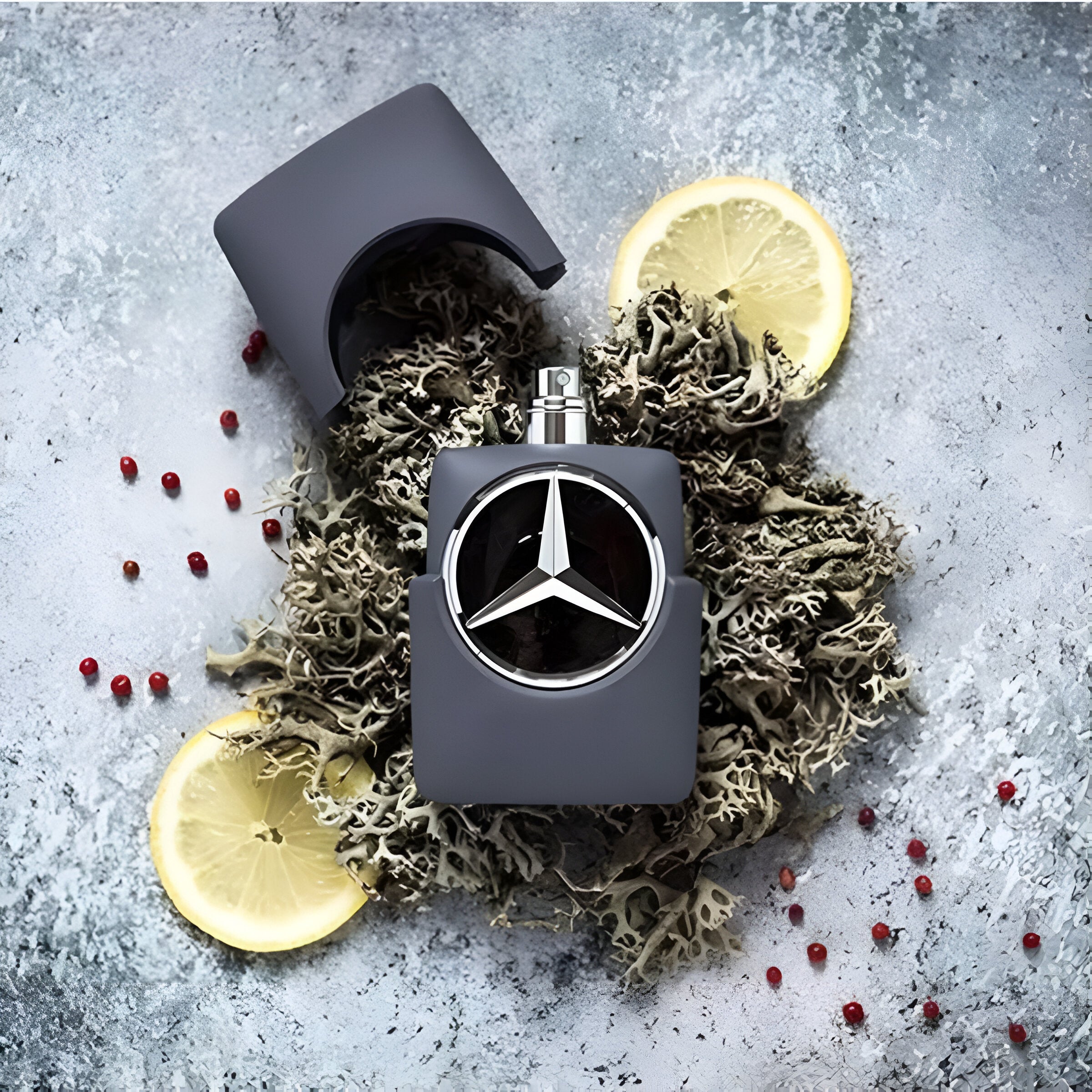 Mercedes Benz Man Grey EDT has a spicy amber scent with citrus, pink pepper, and a heart of sage and ambroxan, finishing with a lasting oriental aroma.