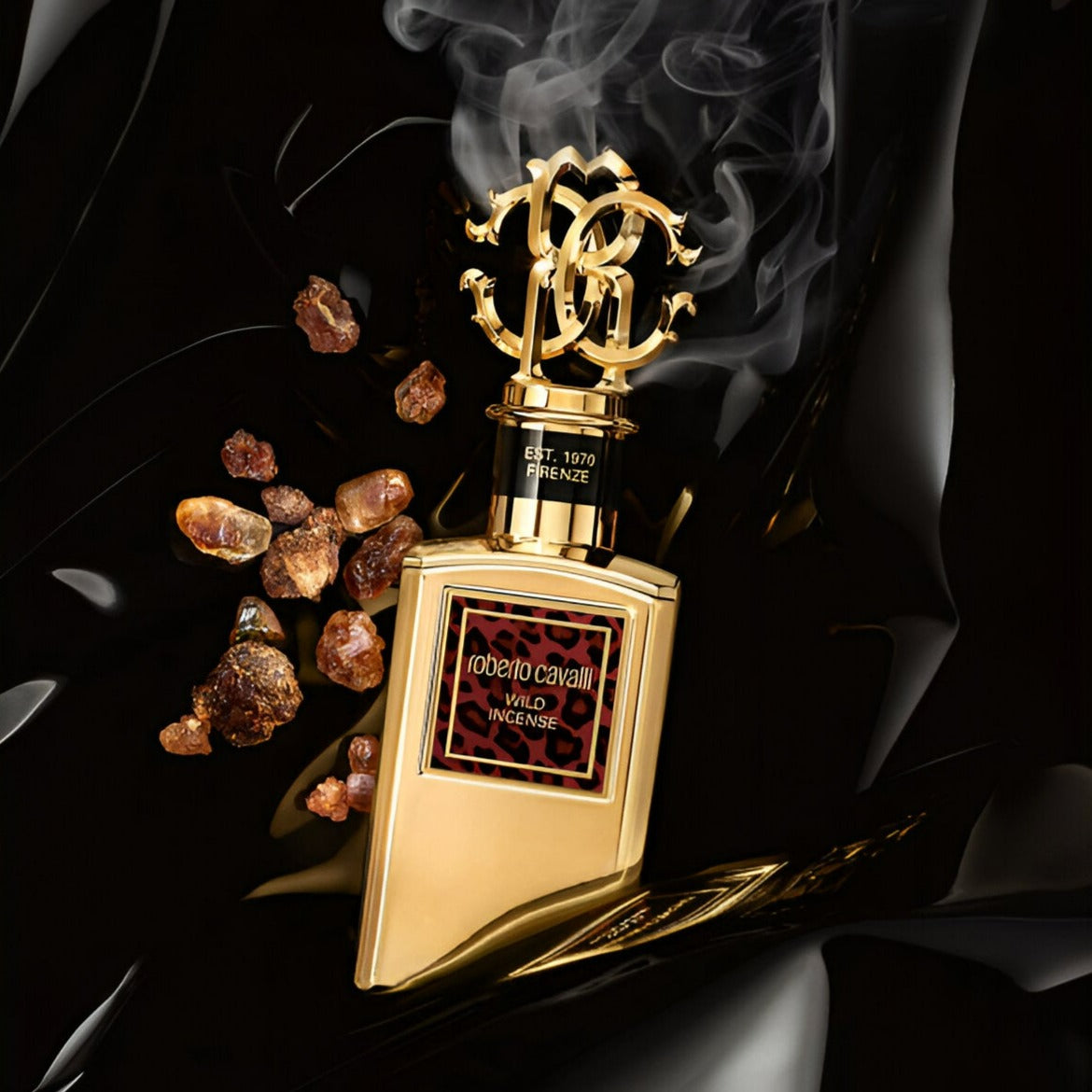 Experience the untamed elegance of Roberto Cavalli Gold Collection Wild Incense Parfum.