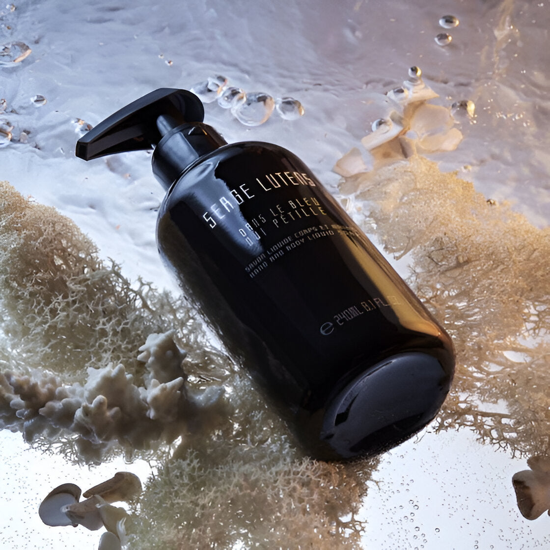 Immerse yourself in the essence of tranquility with Serge Lutens Dans Le Bleu Qui Petille Hand and Body Cleansing Gel.