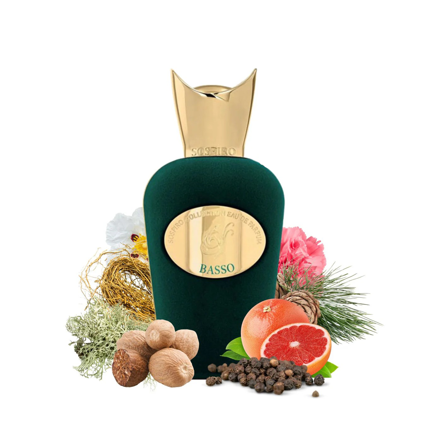 Sospiro Basso EDP is a refined woody-aromatic fragrance built around bright citrus and green vetiver. It balances a lively grapefruit opening with a soapy cedar-vetiver heart and an oakmoss-wood base.