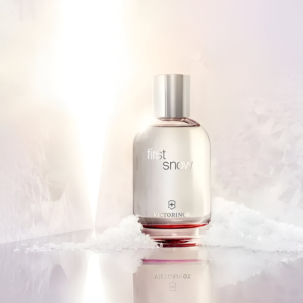Victorinox Swiss Army First Snow EDT smells like a comforting blend of delicate white florals, soft musk, and warm woody notes, capturing the peaceful essence of a serene winter landscape.